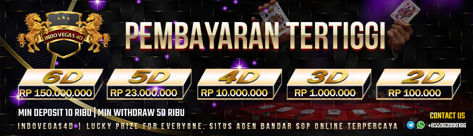 IndoVegas4D adalah merupakan salah satu agen bandar togel wla terhebat dan paling besar di Indonesia. Situs BANDAR TOGEL 4DPRIZE GROUP ini sudah terbukti paling aman dan paling dipercaya hingga layak dijadikan sebagai tempat bermain togel online. Berapa saja kemenangan yang anda peroleh pasti akan di bayar di sini, sebab Indo Vegas4D bukan BO kaleng-kaleng tetapi salah satu BO paling dipercaya yang dari 4DPrize Grup. Apakah itu 4DPrize Grup?, yakni salah satu dari grup Bandar togel paling dipercaya yang tentu saja sudah bisa dibuktikan dan terbukti keamanannya dan di yakini oleh beberapa pemain togel Indonesia. Jadi anda bisa bermain dengan nyaman dan tanpa perlu takut apabila anda bermain di sini.